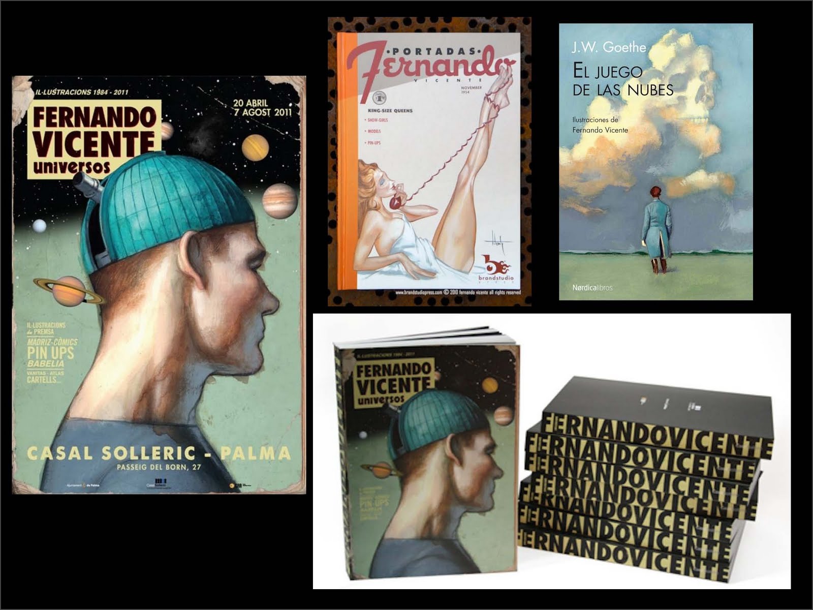 en la Librería Panta Rhei Caseta 135. "Catálogo de la exposición "Universos", "El juego de las nubes", "Portadas", Literatura ilustrada" y "Las Pin-ups"